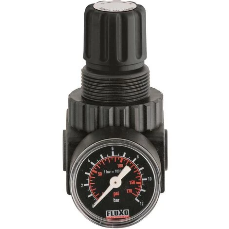 Régulateur de pression avec dégonflement par réglage de pression. La pression de travail est toujours réglable à votre convenance. Le manomÚtre est compris dans la livraison.