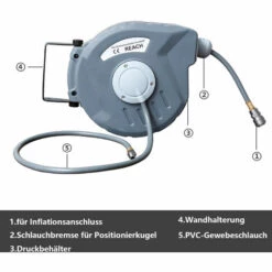2.Hautequalité:l’enrouleurdetuyauaunboîtierenplastiquestableetrésistantauxUV,protègeletuyaudel’usureetuntuyaud’airquiestagréablementflexiblemêmepartempsfroid.