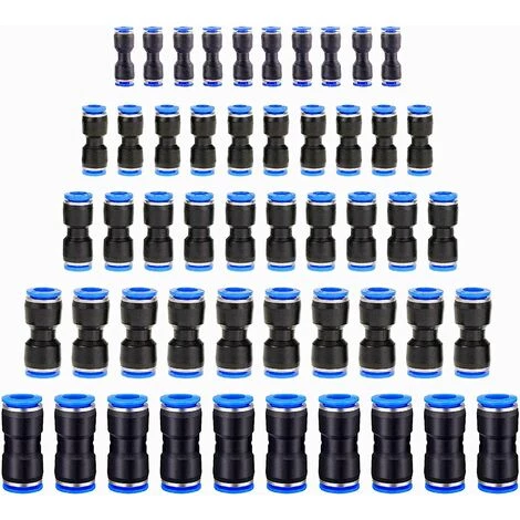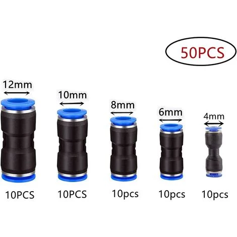 50 pièces connecteurs à pousser droits, 4/6/8/10/12 mm connecteurs pneumatiques à dégagement rapide raccords de ligne d’air pour tube 1/6” 1/4” 5/16” 3/8” 1/2” (2 voies)