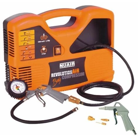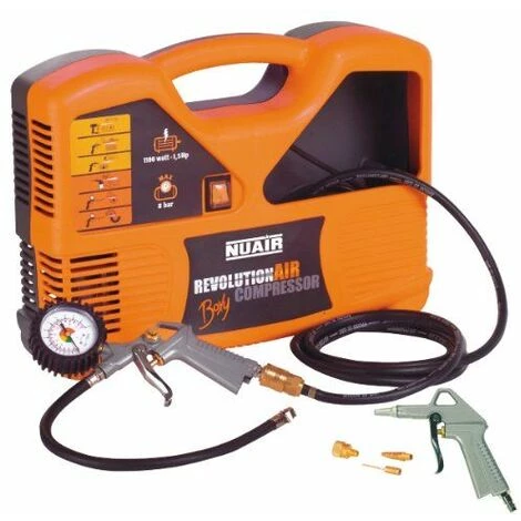 Léger. portatif et ultracompact. le compresseur Mecafer Boxy RevolutionAir bénéficie d’une puissance de 1.5 CV.Idéal pour toute la famille !Caractéristiques :- Sans entretien. ni réglage- Pression maximale : 8 bars- Débit d’air aspiré : 180 litres par minute- Débit d’air restitué à 7 bars : 85 litres par minute- Vitesse de rotation : 3400 tours par minute- Consommation électrique : 2 A – 220 V- Accessoires inclus dans la mallette : 1 tuyau caoutchouc 8 mètres. 1 câble électrique 1.30 m. 1 poignée de gonflage homologuée. 1 soufflette bec court. 3 embouts de gonflage- Poids : 6.5 kg