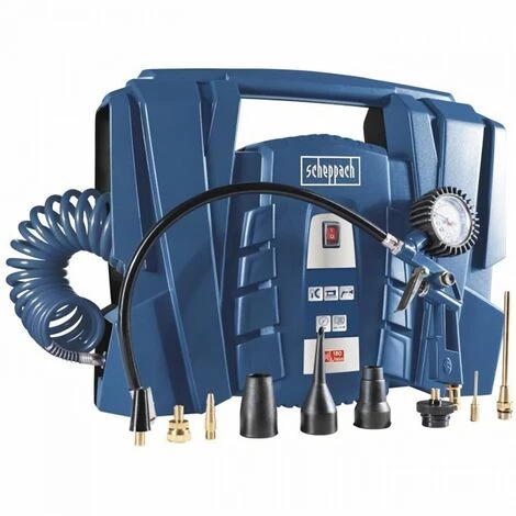 COMPRESSEUR PORTATIF Le compresseur Air Force 4 de scheppach est tres compact mais nĂ©anmoins puissant. Son rendement de 180L/min et sa pression de travail de 8 bar permet d’effectuer tout ce qu’il est nĂ©cessaire de faire a la maison. Son moteur puissant de 1,5 CV veille a toujours fournir la puissance nĂ©cessaire. LivrĂ© avec un ensemble d’accessoires comportant 12 Ă©lĂ©ments, c’est un auxiliaire indispensable dont il faut disposer. – Compact et portatif – Forte admission d’air de 180 L/min – Sans huile et sans entretien – Pression maximum au travail: 8 bar – Dispose d’un compartiment de rangement pour le câble d’alimentation et les accessoires – LivrĂ© avec un grand nombre d’accessoires