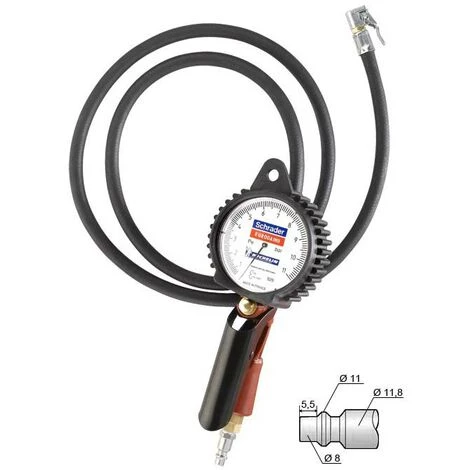 Pour VL et PLTuyau 7 x 13 mm, longueur 1,5 mĂštreĂ©chelle de graduation de 0,7 Ă 11 BARSArrivĂ©e d’air F. 1/4 PoignĂ©e anti-pincement traitĂ©e par cataphorĂšse pour Ă©viter la corrosionConforme Ă la norme AFNOR NFR 63-302 directive EuropĂ©enne 86/217/CEE et dĂ©cret n 88/78Simple graduation en Bars