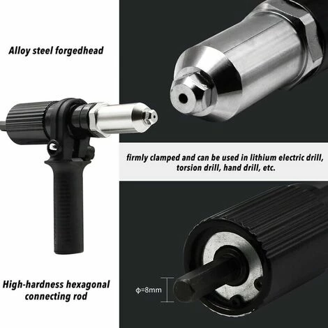 La vis hexagonale de l’adaptateur est reliĂ©e Ă la perceuse Ă©lectrique, qui se transforme rapidement en machine Ă riveter Ă©lectrique et est facile Ă installer.