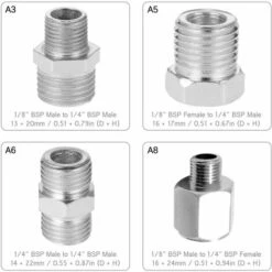 Ceci est des outils utiles d’adaptateurs aĂ©rographe pour aĂ©rographe, compresseur et aĂ©rographe tuyau avec un ensemble de G1 / 8 ou 1/4 BSP mâle ou raccords femelles.