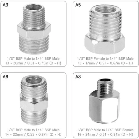 A8: 1/8 « BSP mâle à 1/4 » BSP femelle