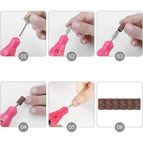 Mode d’emploi: Insrez votre foret ongles souhait, le foret ongles lectrique peut fonctionner efficacement aprs le branchement.