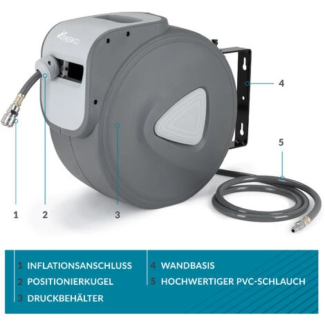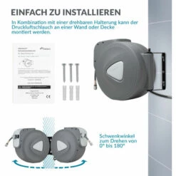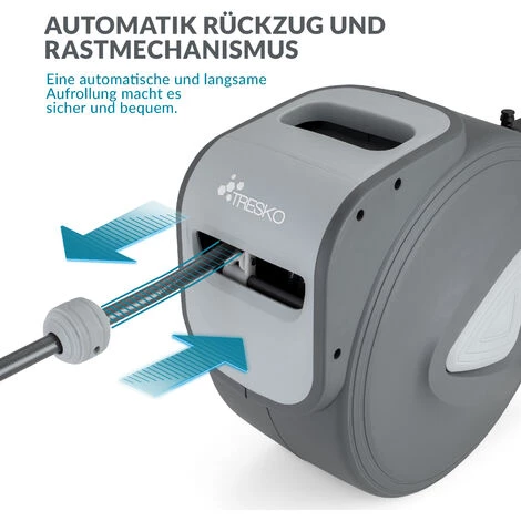 Plus de confort en bricolage ! L’enrouleur de tuyau Ă air comprimĂ© de la marque TRESKO avec systĂšme d’enroulement automatique offre le plus grand confort pour travailler dans l’atelier de la maison ou au garage.