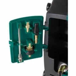 Le boîtier du compresseur portable est équipé d’un volet pratique dans lequel les accessoires peuvent être rangés proprement. Il y a également suffisamment d’espace derrière pour y stocker à la fois le tuyau et le pistolet à air comprimé.