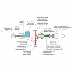 | pistole propriété | Kit de buse / Système d’aiguille 0,80 inoxydable, Controleur de volume de couleur / Vanne de régulation de l’air, Buses appropriées 0.2 / 0.3 / 0.5 mm |