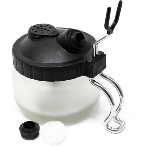 Le rĂ©servoir peut, grĂące au support montĂ© sur le couvercle, aussi ĂȘtre utilisĂ© pour les aĂ©rographes Ă petit godet. (voir photo) .