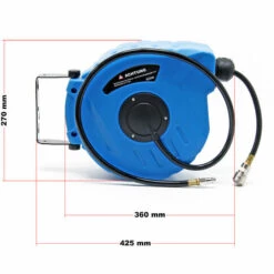 Par ailleurs, le tuyau dâair comprimĂ© est Ă©quipĂ© dâun mĂ©canisme dâarrĂȘt automatique de rembobinage, qui peut ĂȘtre dĂ©bloquĂ© par une lĂ©gĂšre traction. Le tuyau d’air comprimĂ© mesure 10 mĂštres de long et est complĂ©tĂ© par un tuyau de raccordement d’un mĂštre de long. Ce raccord est situĂ© directement sur l’enrouleur de tuyau.