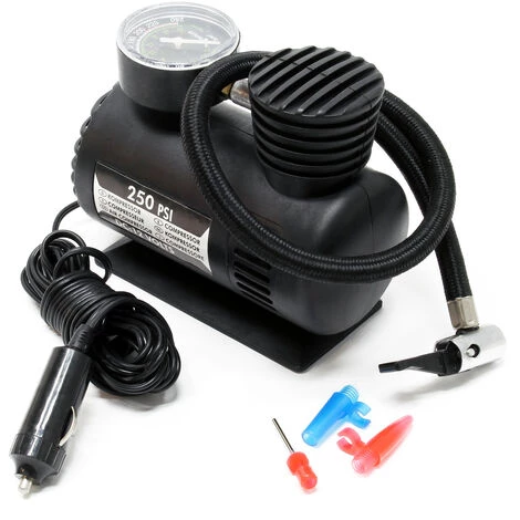 | Accessoires | 1x Mini Compresseur 12V 2x Embouts de buse 1x Adaptateur d’aiguille 1x Tuyau d’air de 0,45 mĂštre |