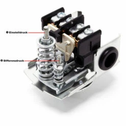 Vous recevrez un pressostat mĂ©canique tel qu’on l’utilise dans les installations d’eau domestique et pour les pompes de jardin.