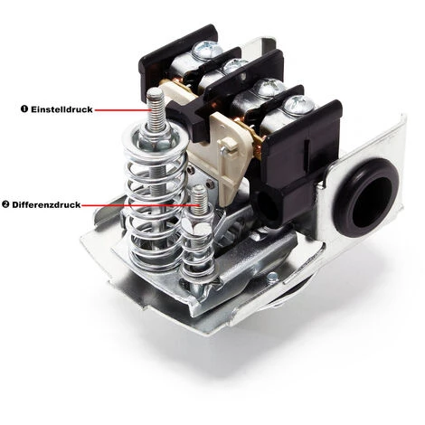 La pression de mise en marche tout comme celle d’arrĂȘt est rĂ©glable en continu. Il s’agit d’un pressostat monophasĂ© avec phase et fil neutre simultanĂ©s. L’interrupteur met une pompe en marche automatiquement selon la pression de l’eau. Si la pression de mise en marche n’est pas atteinte dans le circuit de circulation d’eau, la pompe se met en marche, elle s’arrĂȘte quand la pression d’arrĂȘt est atteinte. (ContrĂŽleur de pression).